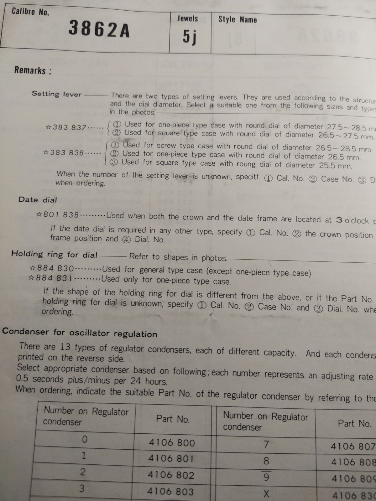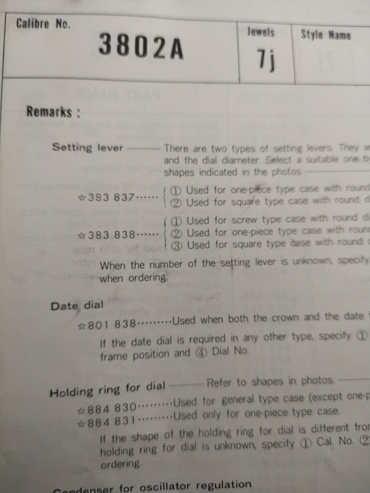 NOS Circuit Plock Seiko Cal / 3802A/ 3803A/3819A/Part . 4001 838 -