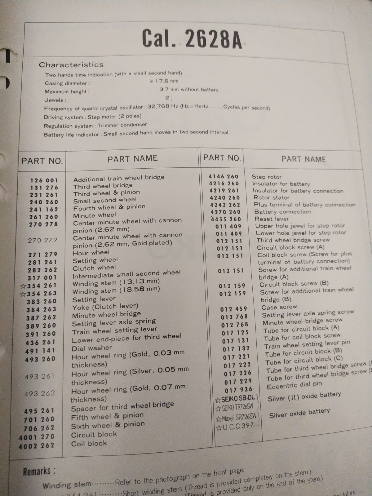 NOS Circuit Plock Seiko Cal / 2620B /Part . 4001 270 -