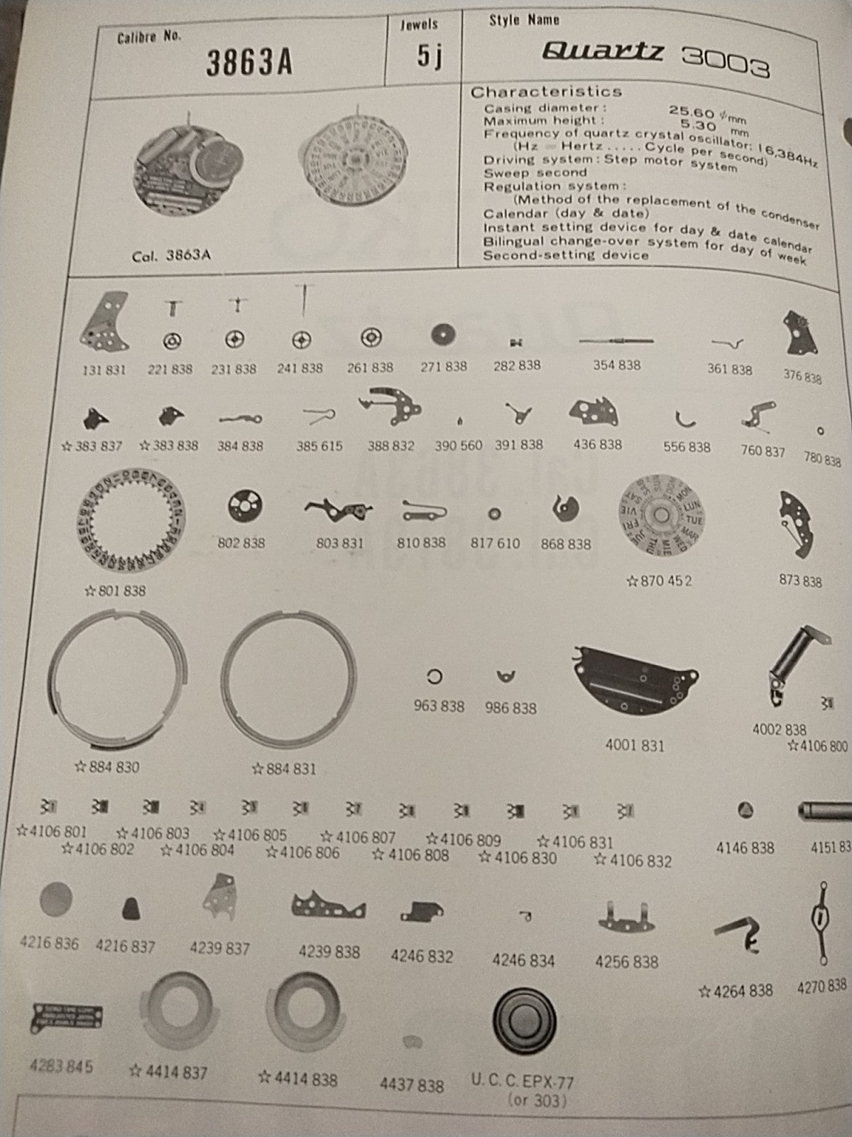 NOS Circuit Plock Seiko Cal / 3862A /3863A/ Part . 4001 831 -
